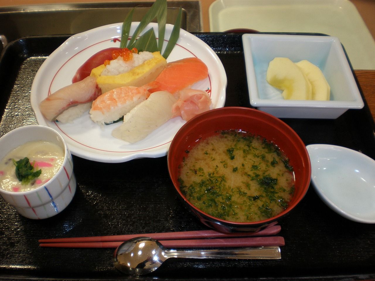 そしてお昼になり、お待ちかねのお寿司が登場。