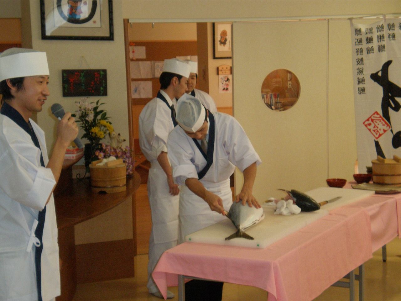 料理人のみなさんも、この日の為に朝早くから準備をしていただき、11時15分より解体ショーが