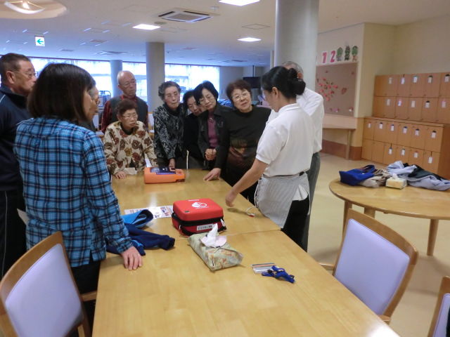 最後に看護師によるAED講座を開催し、AEDの使用方法や