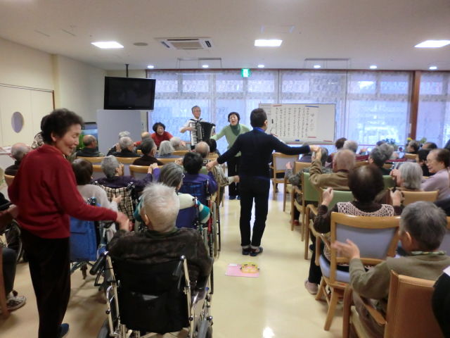 アコーディオンの軽快な音楽に合わせて、歌や手遊びなど、