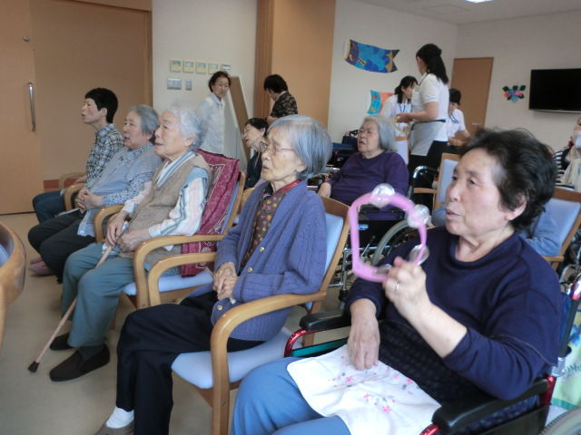 自分たちが歌うことより、御利用者様に声を出して歌って頂く事を