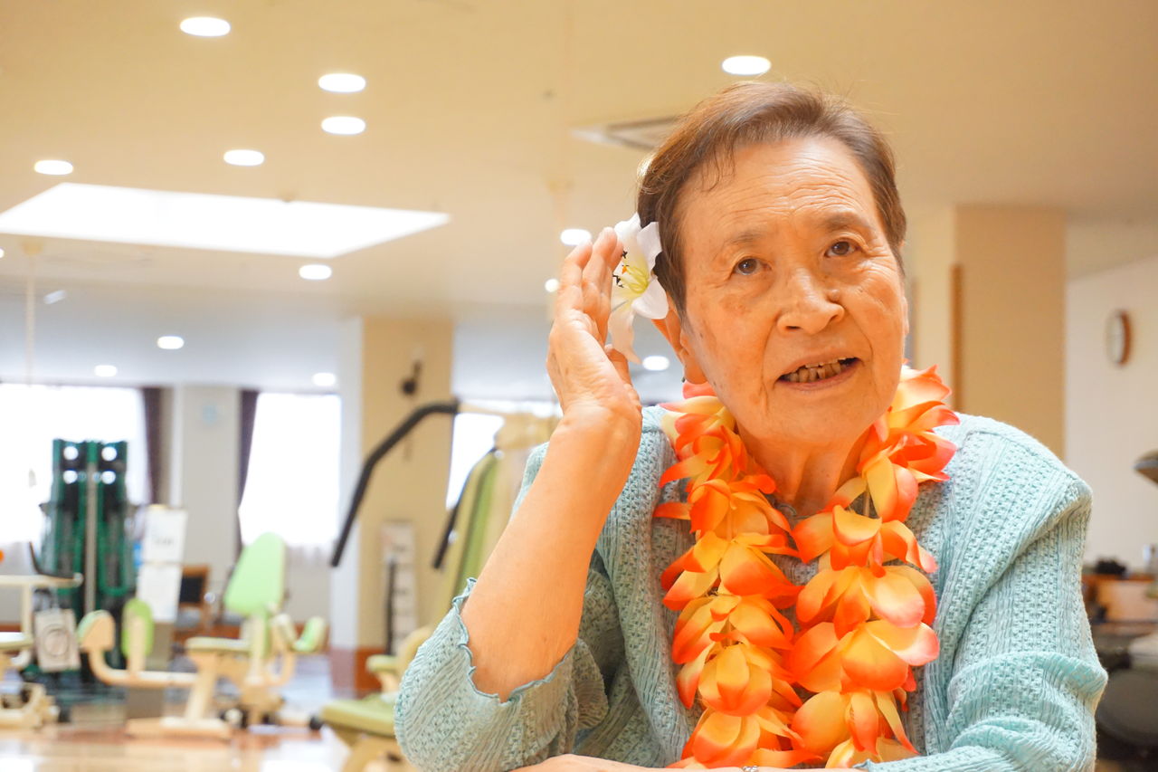 ロマンチックで心地よい音楽に合わせ、衣装を付けると若々しくなり、楽しく踊れると、御利用者様も喜ばれています。