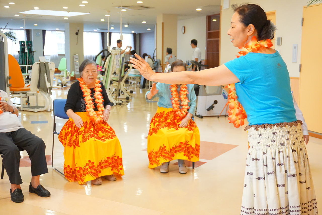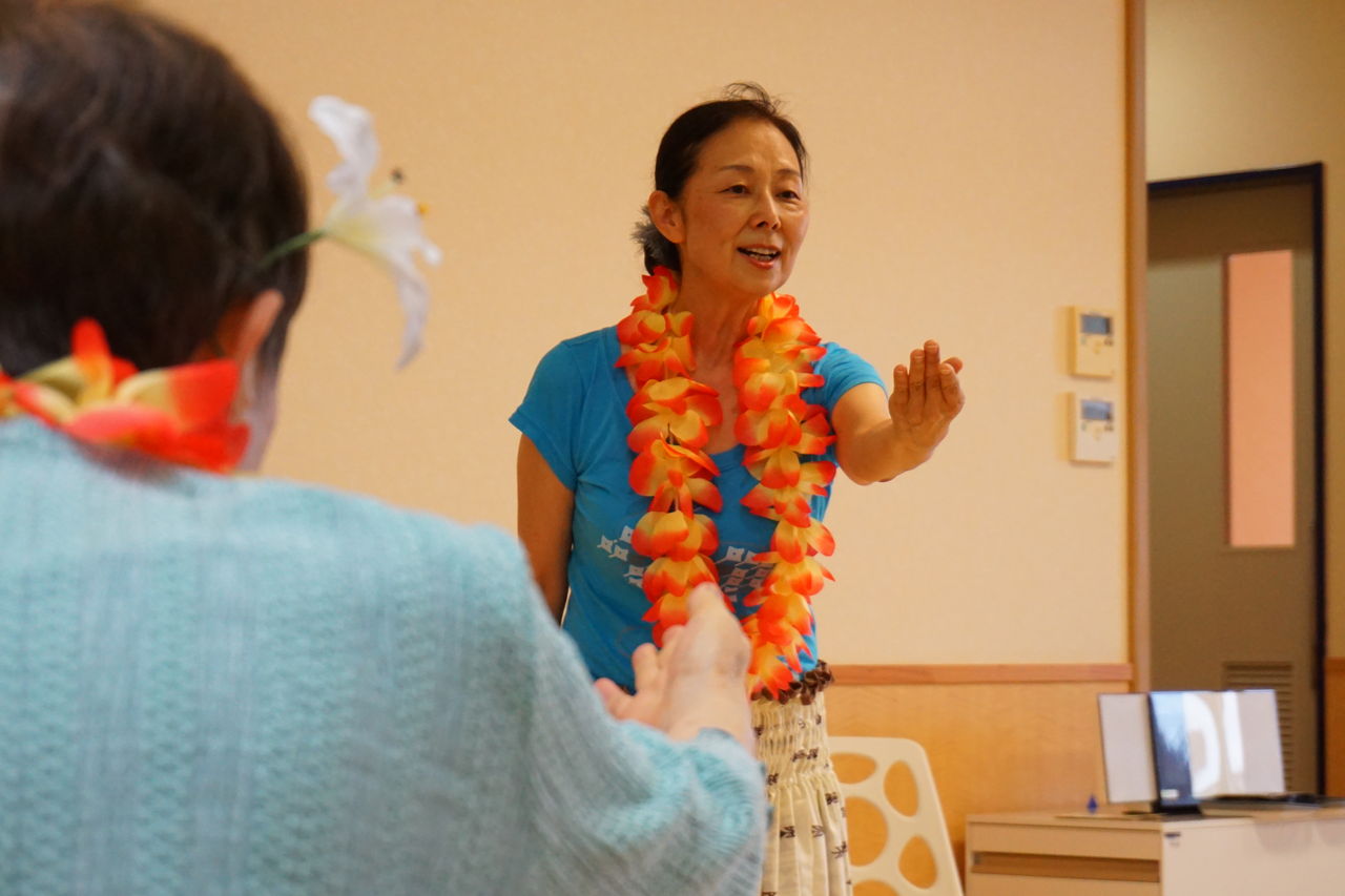 ハワイアンフラは毎週水曜14時~ 「ヨシコフラスタジオ」の先生がご指導くだされています。