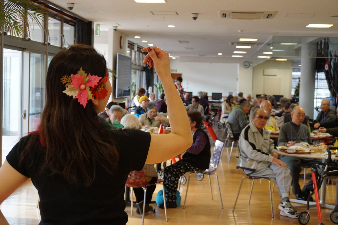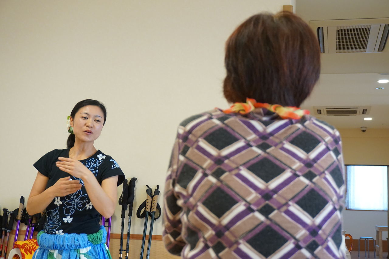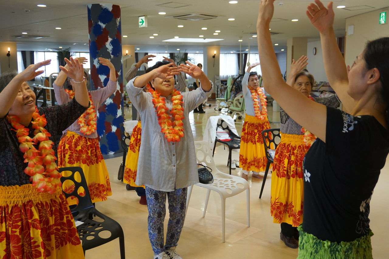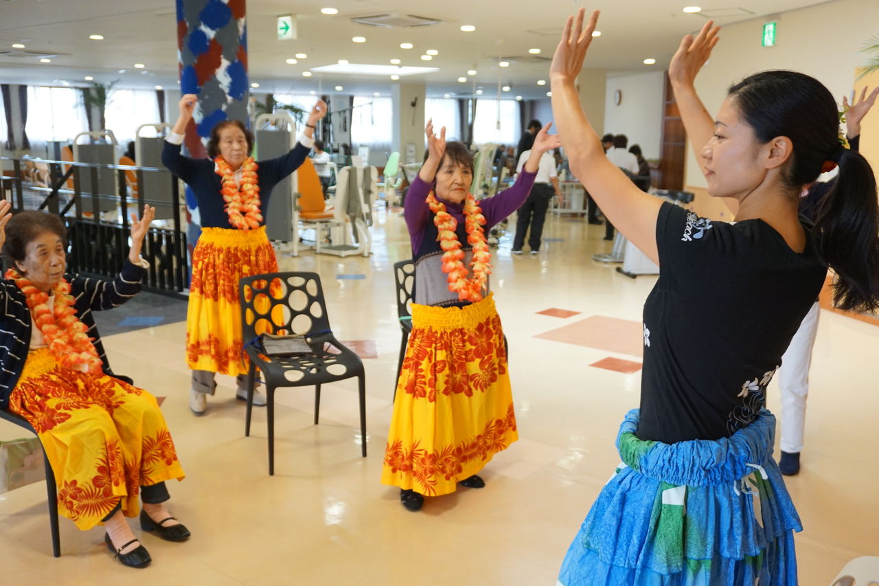 曲に合わせ多勢で踊るフラは美しく、観覧していた御利用者様やスタッフも皆、魅了されました。