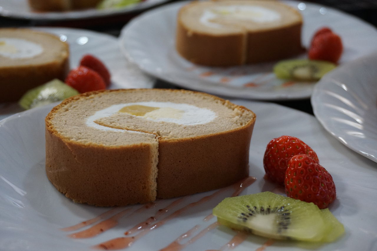 さらには、デザートとしてデコレートした米粉ロールケーキとフルーツ盛り合わせをご用意。