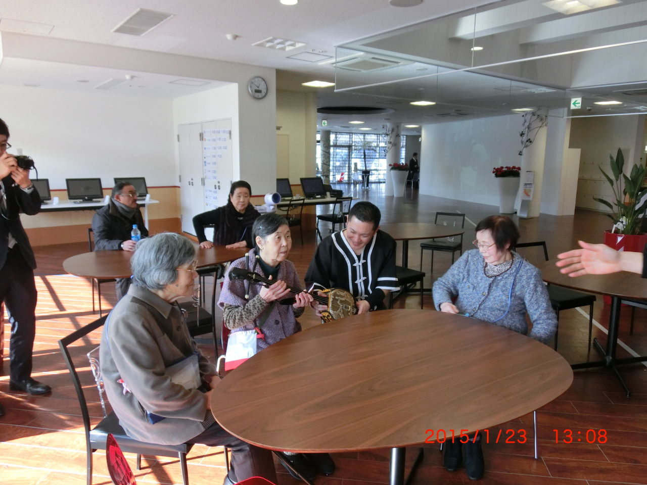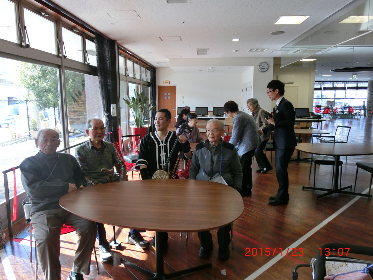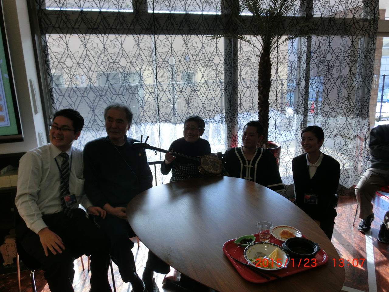 普段触る機会のない蛇味線を持ち、ご利用者様も楽しそう。