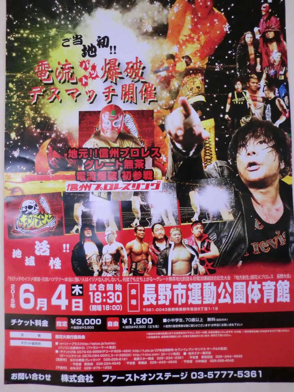 ちなみに、6月4日(木)18:30 長野市運動公園にて開催される「有刺鉄線電流爆破バットデスマッチ」は70歳以上の方は無料だそうです。