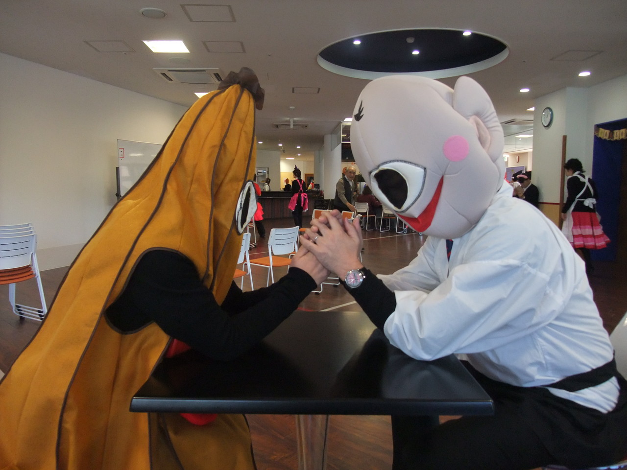 ドラキュラ、ピエロ、メイド、ガチャピン
