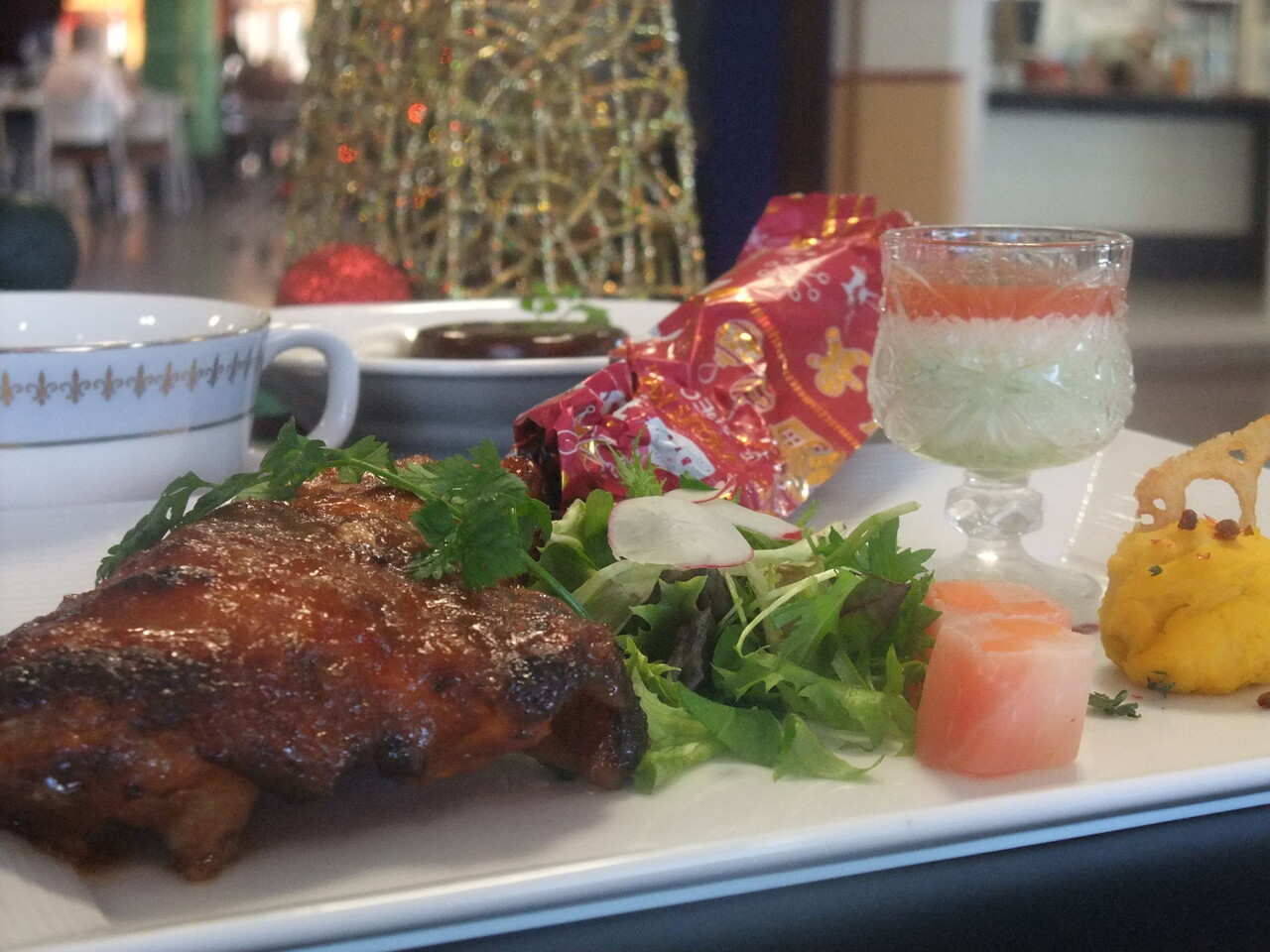恒例のローストチキンは勿論のこと、ピクルスの生ハム巻きや野菜のヴェリーヌ、