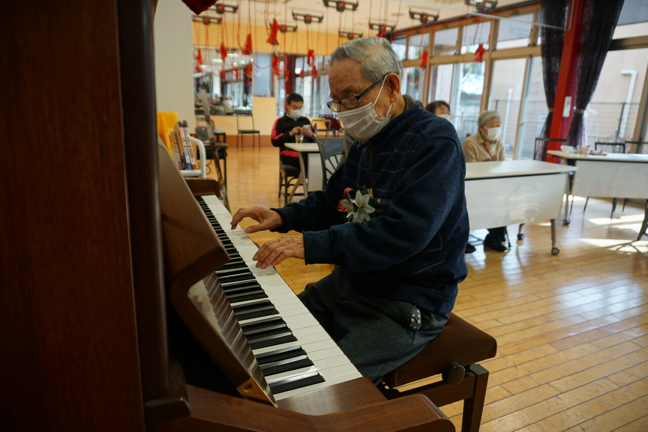 今年のピアノの生演奏は、なんと、御利用者様!!!