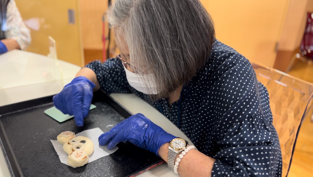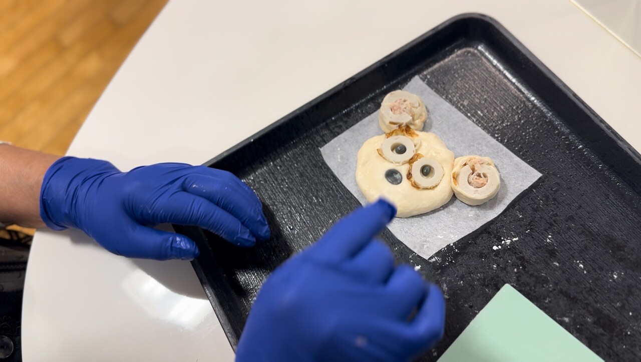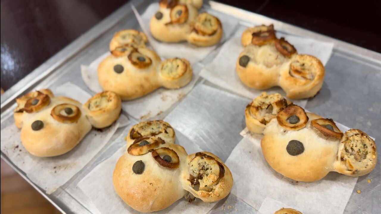 日によってパンの形や味を変え、たぬきやねずみなど可愛いパンを作っていただきました。